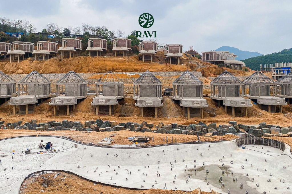 Những ngày cuối tháng 4/2024, công trình dự án Ravi Onsen Retreat Hoa Binh vẫn luôn tất bật thi công ngày đêm với sự giám sát chặt chẽ để đảm bảo hoàn thành tiến độ đúng cam kết.