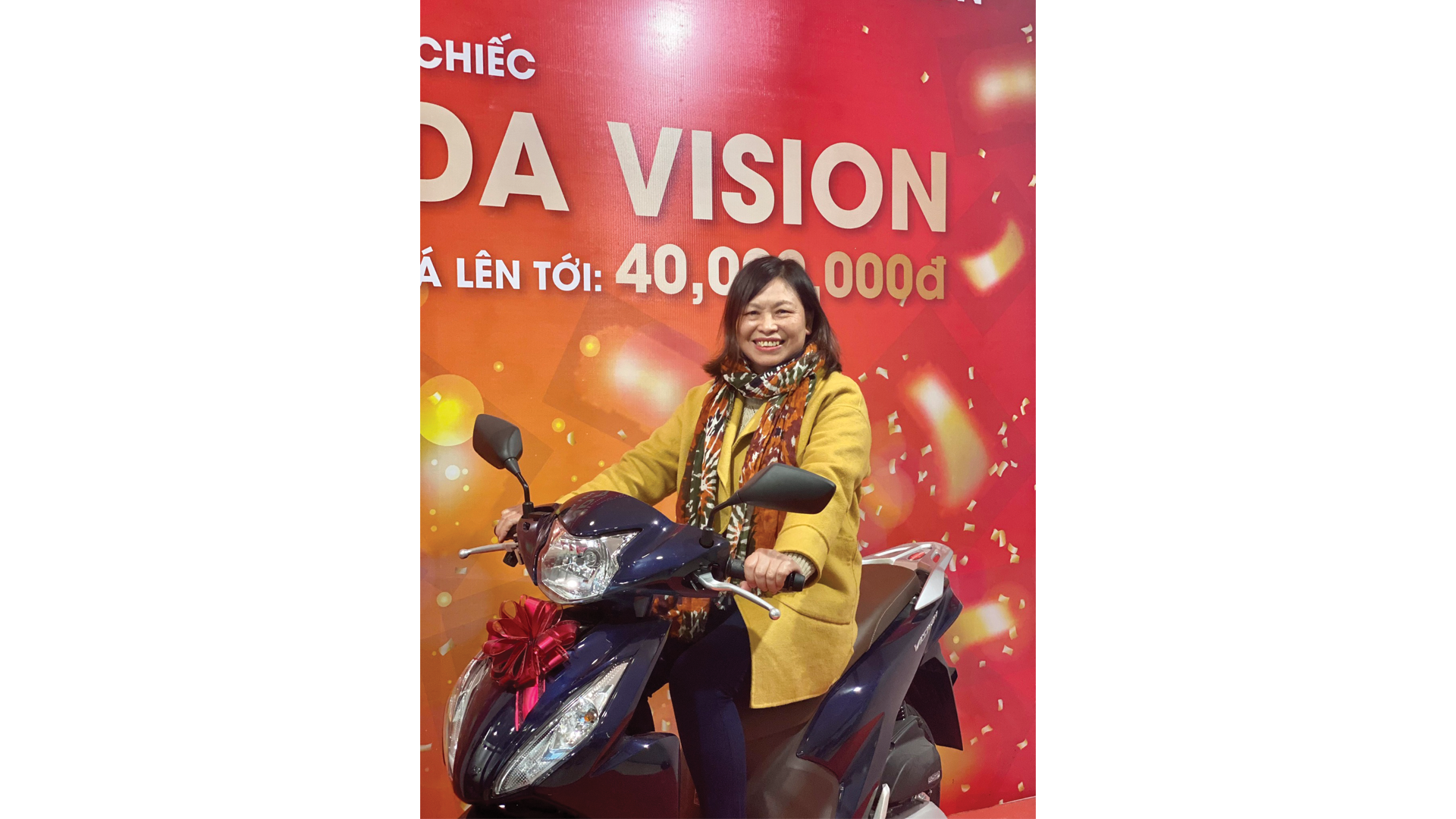 Vào ngày 17/01 vừa qua, Quý Khách hàng may mắn đầu tiên - Bà Nguyễn Thị Chinh đã có mặt tại Văn phòng công ty tại tầng 5, tòa nhà Artemis, số 3 Lê Trọng Tấn, Thanh Xuân, Hà Nội để tham dự lễ trao tặng cũng như làm thủ tục bàn giao chiếc xe máy.